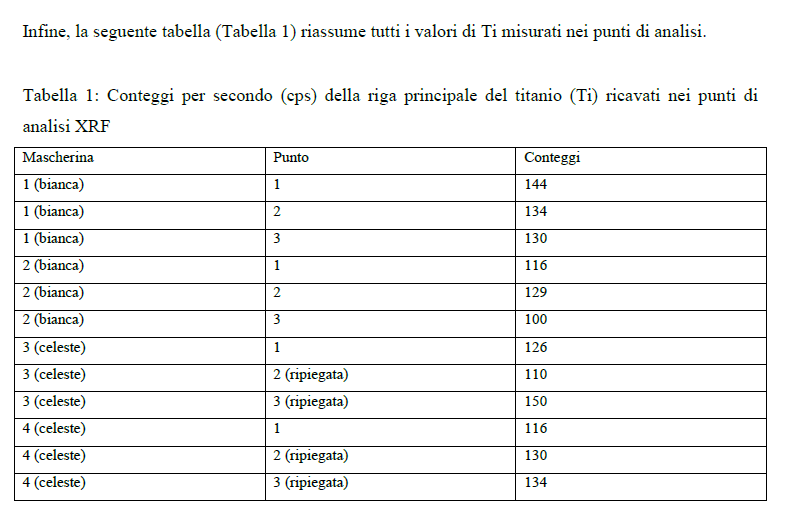 Luca, quindi, ha pensato che fosse il caso di analizzare il prodotto confezionato, quello mai infettato o inquinato dall’utilizzatore e di chiedere non la quantificazione di eventuali germi, ma la determinazione delle sostanze chimiche del materiale di cui sono fatte, per capire esattamente cosa contiene questo “dispositivo” che ci chiedono (gentilmente, perché la legge non prevede alcun obbligo per nessuno!) di mettere a contatto con le nostre vie aeree durante una mai dichiarata “pandemia” provocata da un virus che colpisce proprio gli organi respiratori.