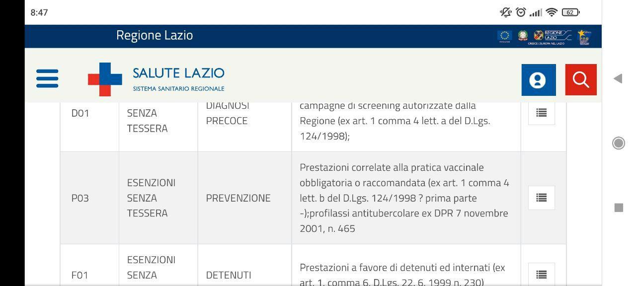NB: ogni Regione ha il proprio elenco esenzioni, molti dei quali pubblici. Consiglio di chiedere gli altri alle ASL o direttamente alle regioni.
