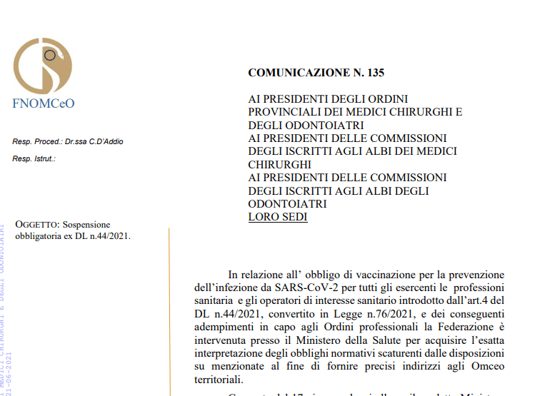 Comunicazione FNOMCeO n. 135 – una evidente incomprensione linguistica